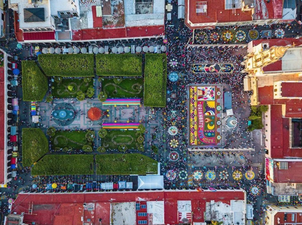 Desde hace generaciones, Uriangato ha mantenido viva la tradición de elaborar alfombras y tapetes de aserrín y flores, transformando sus calles en lienzos que transmiten identidad y orgullo comunitario. Hoy, esta práctica trasciende fronteras y coloca al municipio como un referente en el arte efímero y el turismo cultural de gran formato.
