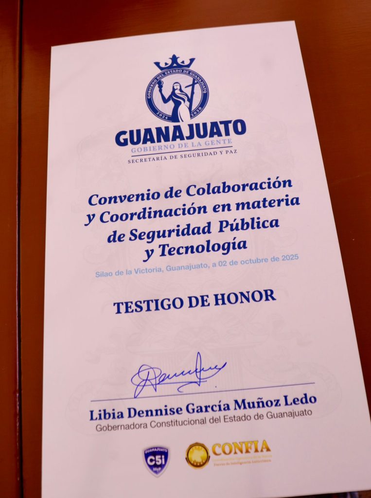 Con este Convenio, Guanajuato da un paso histórico en coordinación y blindaje tecnológico, consolidándose como referente nacional en seguridad pública moderna, eficiente y cercana a la ciudadanía.