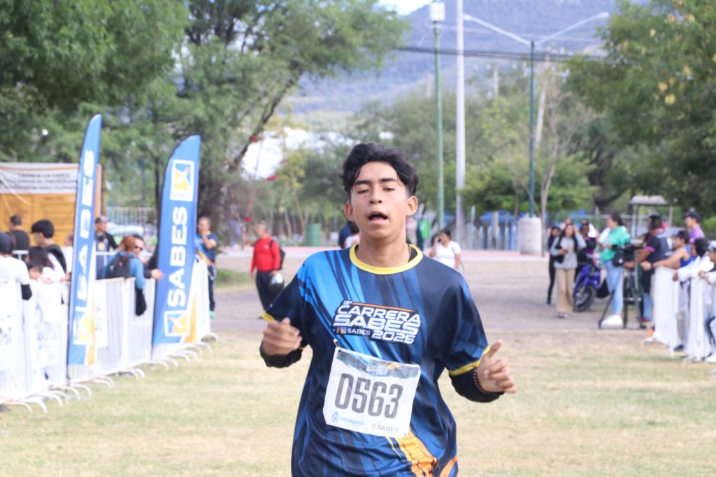 Después de recorrer siete kilómetros, con un tiempo de 23 minutos y 16 segundos, hizo su aparición Pedro Jaramillo Salinas, estudiante del Bachillerato SABES 21 de Marzo matutino, quien fue el primer competidor en cruzar la línea de meta.