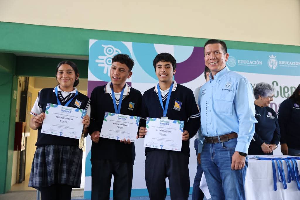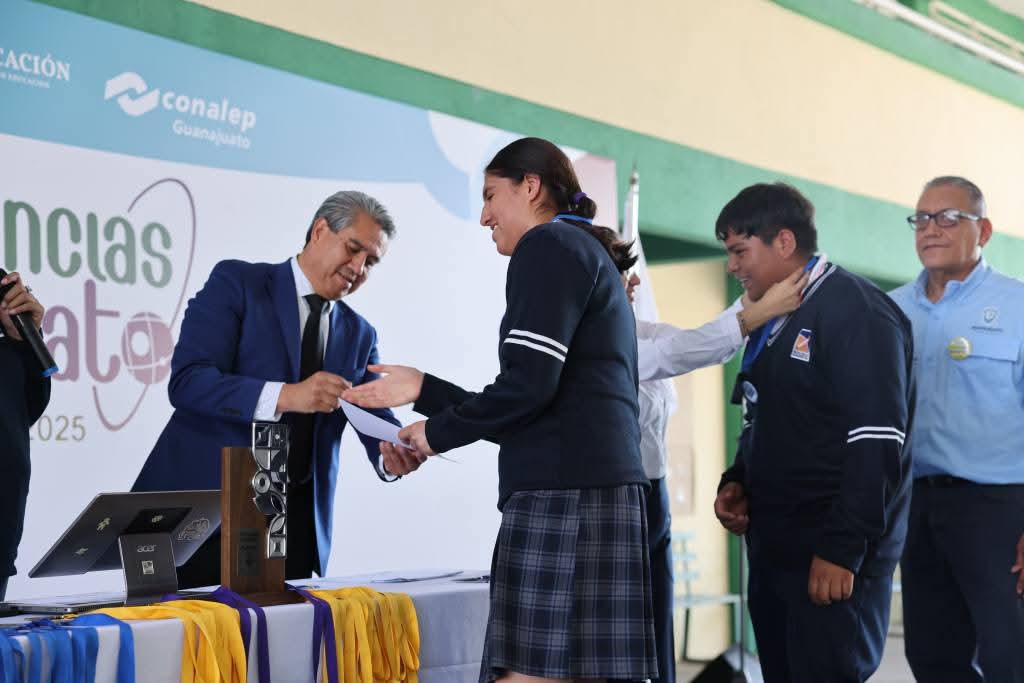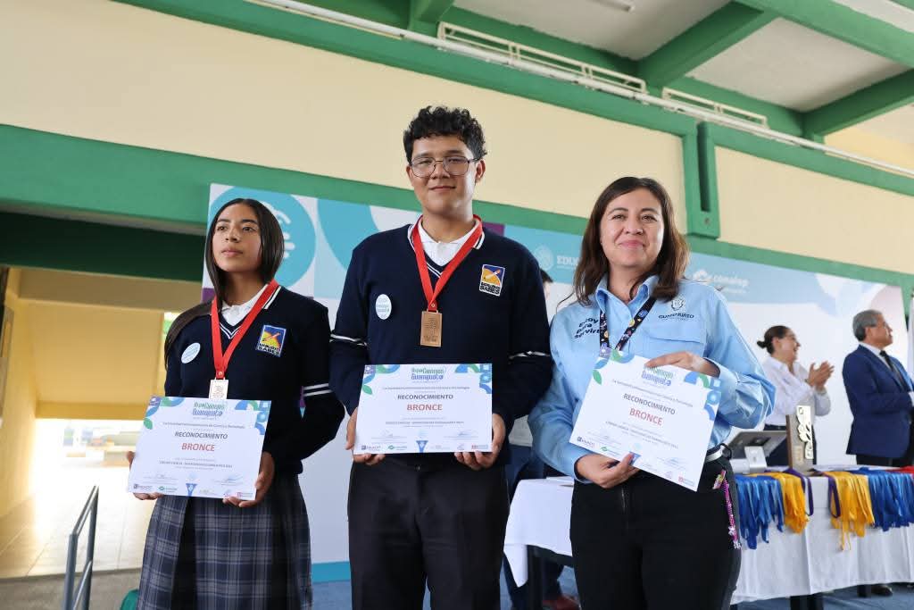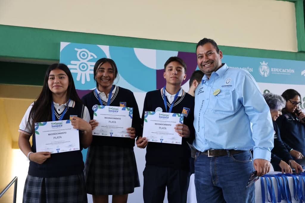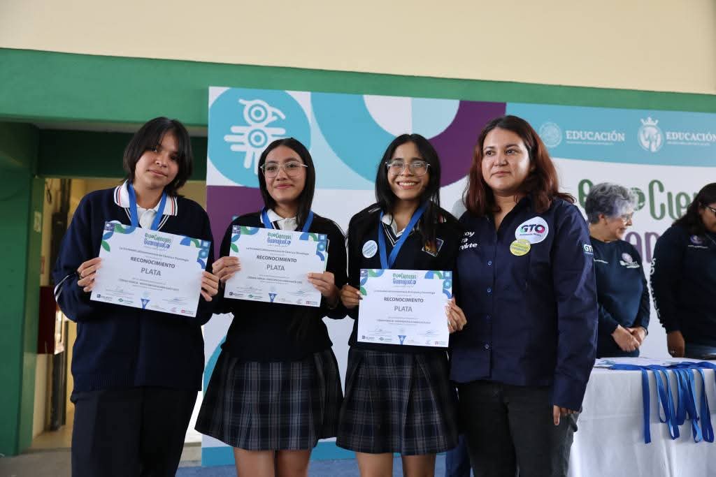 Irapuato, Guanajuato. 17 de octubre de 2025. Tres estudiantes del Bachillerato SABES Presas de Monjas, del municipio de San Diego de la Unión, obtuvieron la medalla de oro en la edición 2025 de ExpoCiencias Guanajuato, gracias a su proyecto Green Tech: FVM (Forraje Verde Hidropónico). Esta distinción les otorga el pase para representar al SABES y al estado de Guanajuato en la etapa nacional, que se llevará a cabo en diciembre en Tamaulipas.