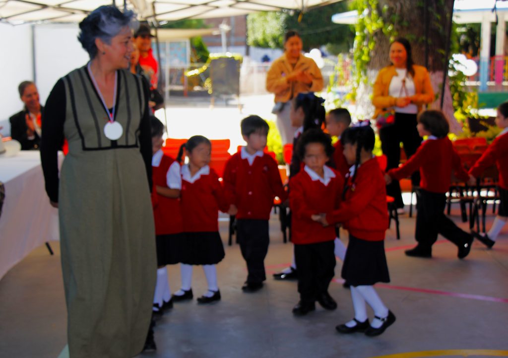 Por su parte, la maestra Rosalinda Galván, visiblemente emocionada, compartió su sentir al cerrar este capítulo de su vida: “me voy satisfecha y agradecida con Dios, con mi familia y con mis compañeras. En la educación encontré una vocación que no sabía que tenía; me voy con el corazón lleno por todo lo que aprendí y por el cariño de mis niñas y niños”, precisó.