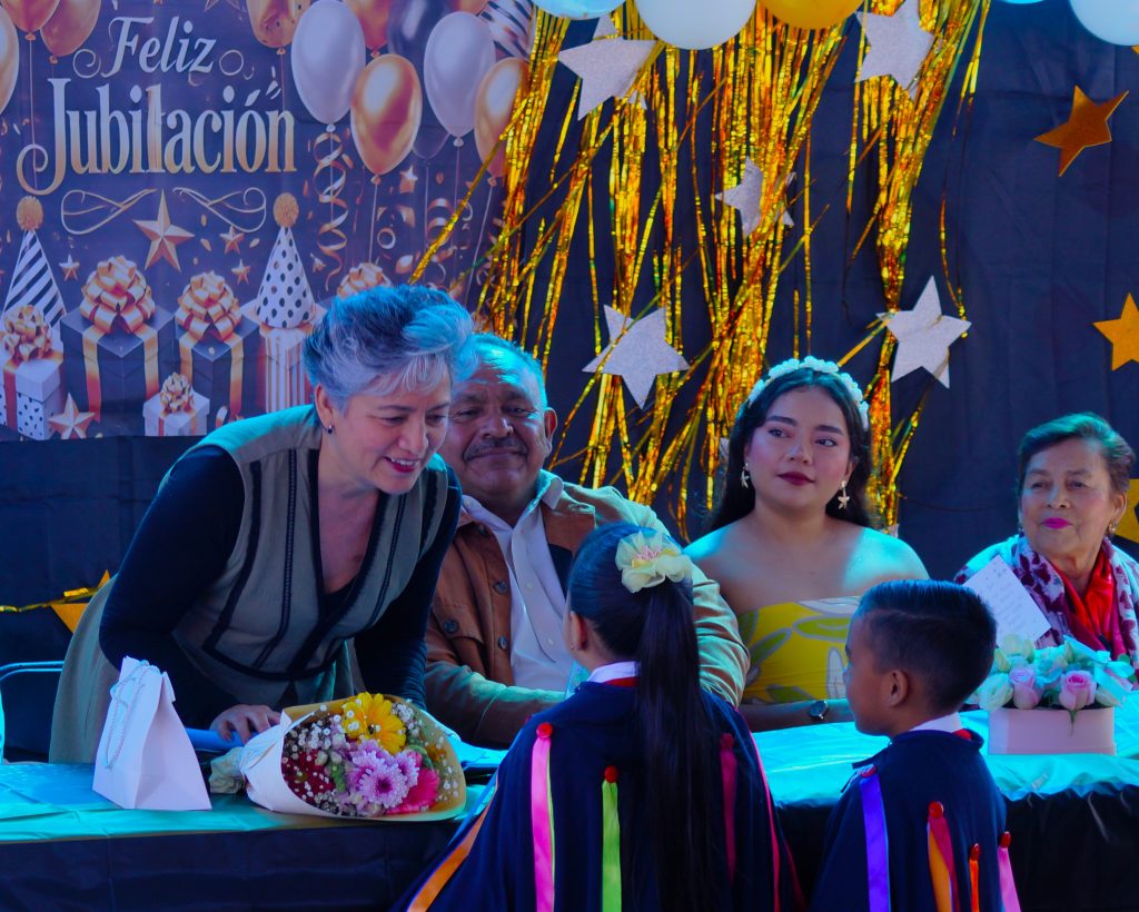 Durante la ceremonia, la comunidad escolar, familiares, autoridades educativas y padres de familia expresaron su gratitud hacia la docente por haber dejado huella en generaciones enteras que pasaron por sus aulas, a través de un festival artísticos y música en vivo.