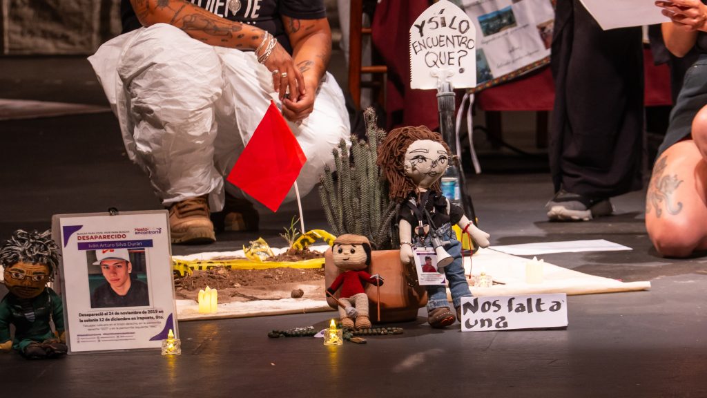 Guanajuato, Guanajuato, 23 de octubre de 2025. ‘Estudios en campo’ llegó a la edición 53 del Festival Internacional Cervantino, sensibilizando al público, que se hizo presente en el Teatro Cervantes, de la capital del estado, sobre la lucha de las madres buscadoras que conforman los colectivos de búsqueda en el país.