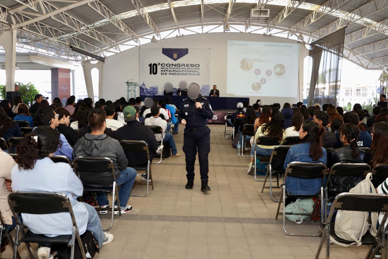 Dentro del décimo Congreso Multidisciplinario Internacional de Ingenierías 2025, la Secretaría de Seguridad y Paz participó con la charla “Prevención de la extorsión”, ante más de 100 estudiantes y sus docentes.