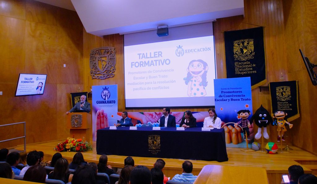 La presentación oficial se llevó a cabo en las instalaciones de la Escuela Nacional de Estudios Superiores (ENES) Unidad León de la UNAM, donde se reunieron 130 participantes, entre docentes, directivos y autoridades educativas de las siete Delegaciones Regionales de la SEG, para recibir capacitación y herramientas prácticas que les permitan impulsar la mediación y la resolución pacífica de conflictos dentro de las comunidades escolares.