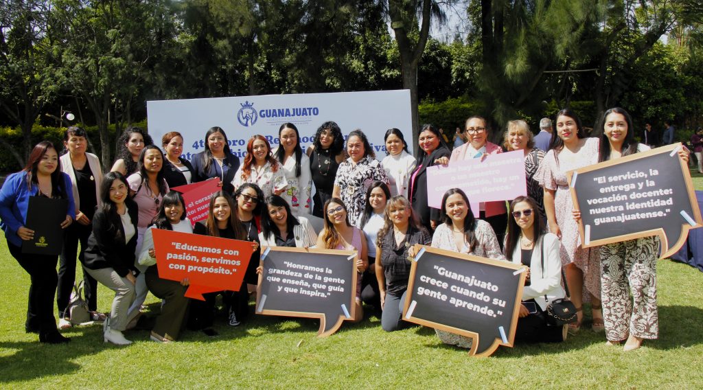 Irapuato, Gto., 27 de octubre de 2025.– El Gobierno de la Gente, a través de la Secretaría de Educación de Guanajuato (SEG), otorgó el Reconocimiento a la Práctica Educativa 2025 a más de 400 maestras y maestros de educación básica y media superior, en honor a su compromiso, creatividad y esfuerzo por mejorar el aprendizaje de niñas, niños y adolescentes, así como por su destacada labor en la prevención de la deserción escolar en el estado.