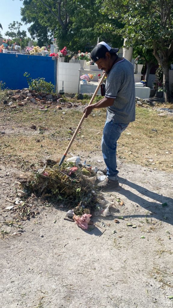 Se intervino con saneamiento y limpieza en el panteón municipal de Jaral del Progreso, en coordinación con el Departamento de Promoción de la Salud del CAISES, la Dirección de Servicios Públicos Municipales y la brigada de Vectores de la Jurisdicción Sanitaria V Salamanca.