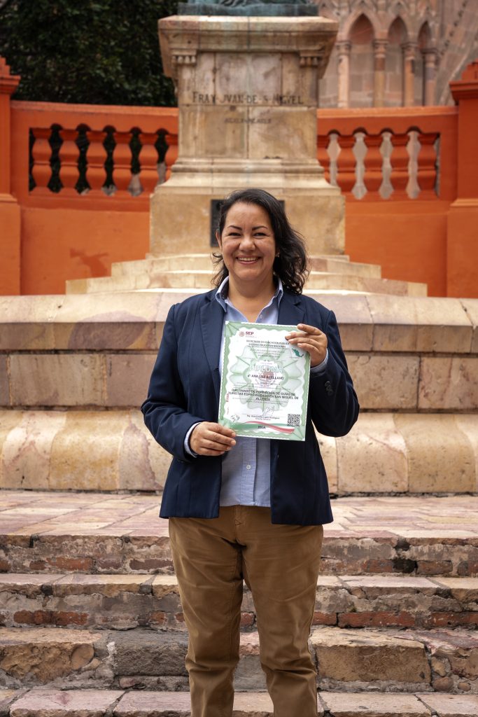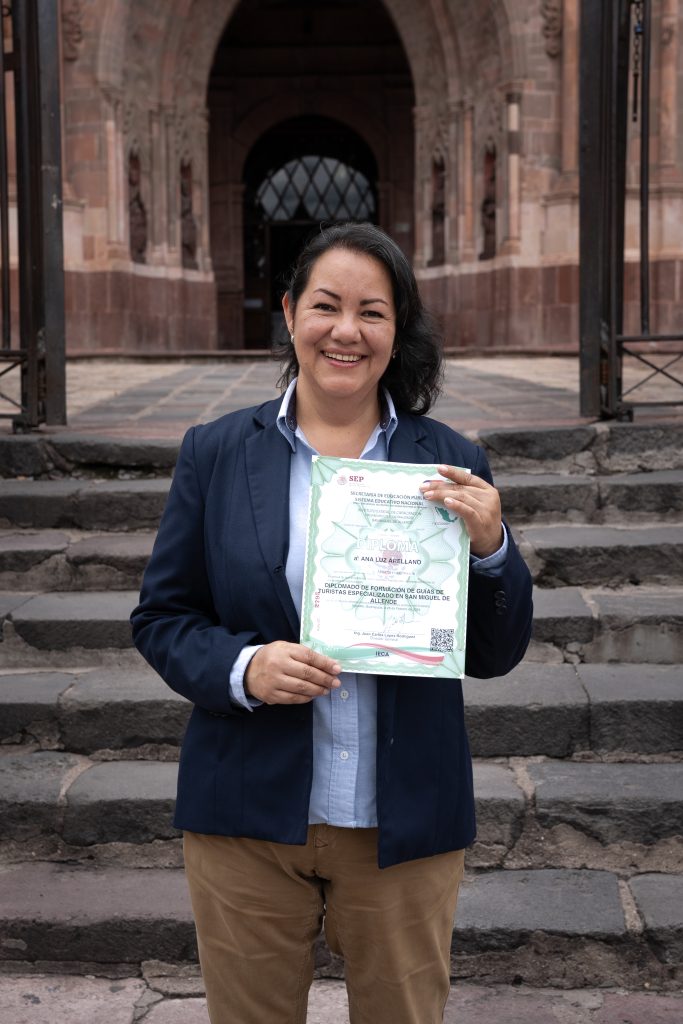“Tomé el curso de guía local en San Miguel de Allende y actualmente también me dedico a dar recorridos turísticos”, compartió Ana Luz, quien ahora guía a visitantes por los rincones llenos de historia y cultura de su municipio.