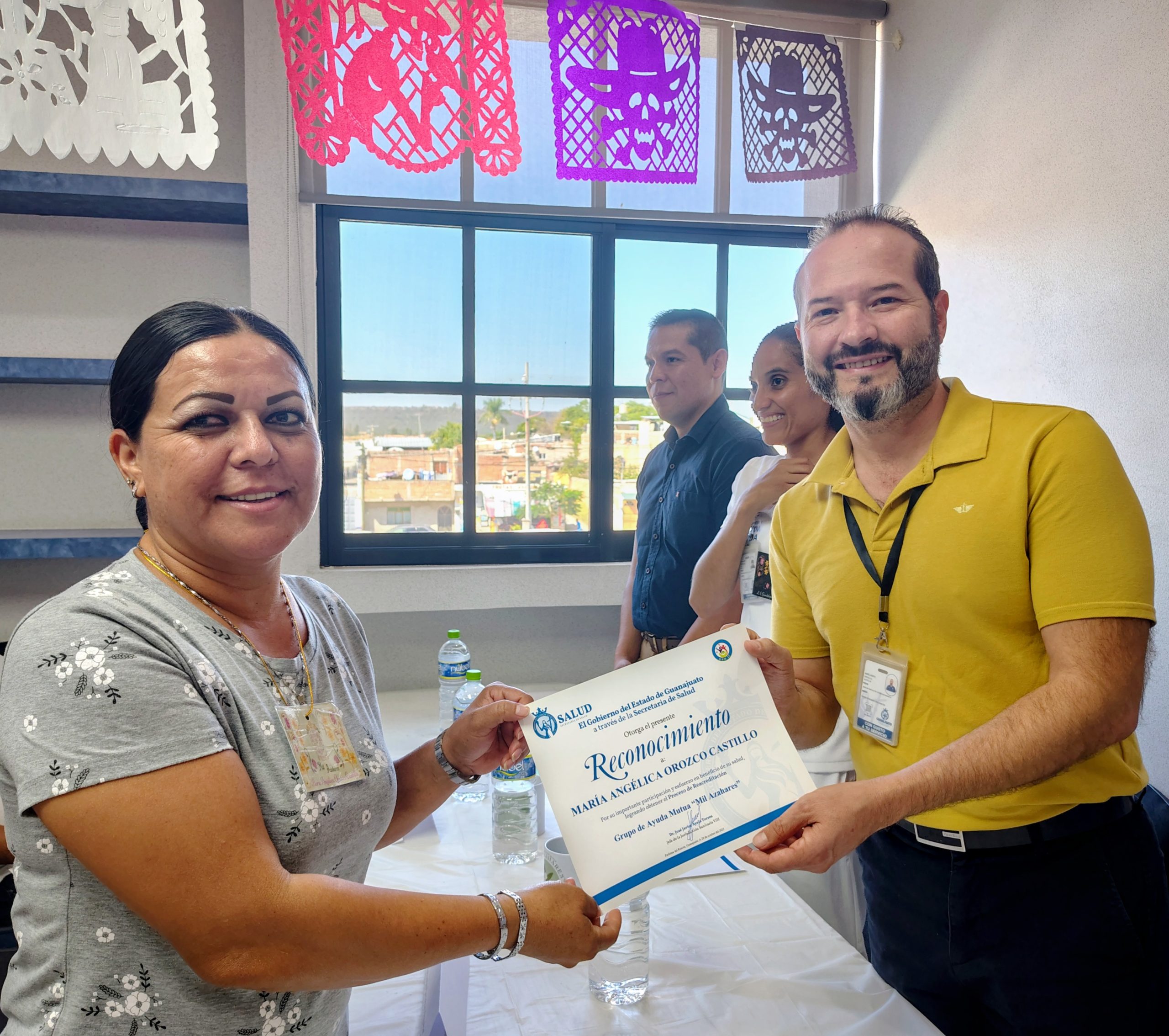 El grupo, acompañado por autoridades estatales y personal de la Jurisdicción Sanitaria VIII, fue evaluado por la MNC Liliana Ivonne Granados Martínez, acreditadora estatal del Programa de Enfermedades Crónicas.