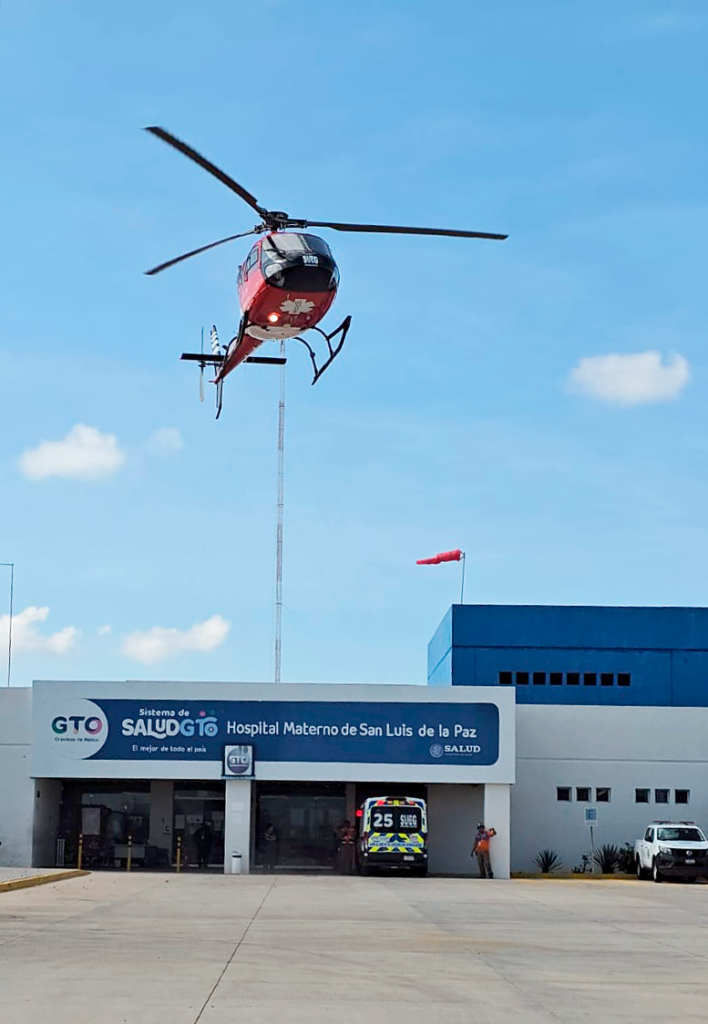 Guanajuato, Guanajuato. 7 de noviembre de 2025.- El Gobierno de la Gente por conducto de la Secretaría de Salud de Guanajuato fortaleció los despliegues aéreos para la referencia de pacientes entre la Red de Hospitales.