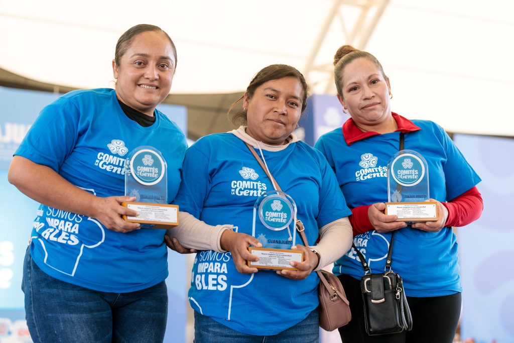 La Gobernadora Libia Dennise premió a tres categorías: Mayor Impacto en su Comunidad (San Luis de la Paz, San Miguel de Allende, Guanajuato, Irapuato, Manuel Doblado, Celaya, León); Capacitación con Logro Emprendedor (Xichú, Dolores Hidalgo, Guanajuato, Abasolo, Jaral del Progreso, Cortazar, León); y al Interventor Destacado (Tierra Blanca, Ocampo, Irapuato, Pénjamo, Jaral del Progreso, Cortazar, León), distinguiendo a quienes han logrado movilizar a su comunidad, mejorar su entorno, impulsar proyectos productivos y fortalecer tejido social.