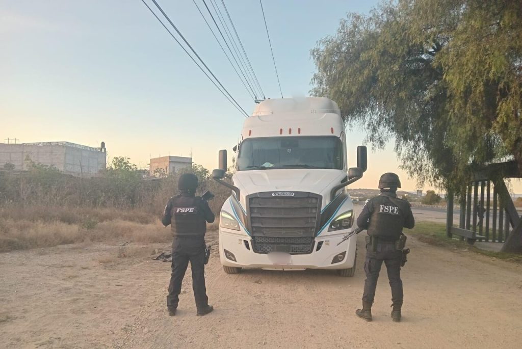 Se trató de un tractocamión Freightliner Cascadia, modelo 2022, color blanco, con placas del Estado de México, que transportaba una caja seca con artículos.