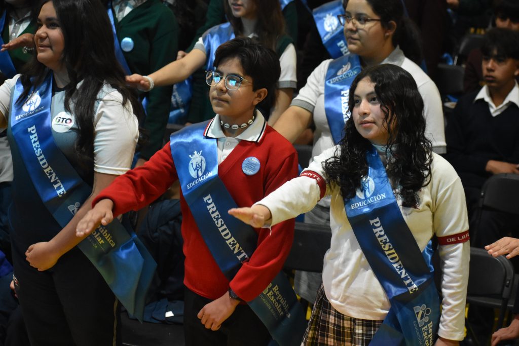 León, Gto., 21 de noviembre de 2025. – La Secretaría de Educación de Guanajuato, a través de la Delegación Regional de Educación III en León llevó a cabo el evento “Líderes con Voz: Toma de Protesta de la República Escolar”, como parte del seguimiento a la implementación del Modelo de República Escolar en los niveles de primaria y secundaria.