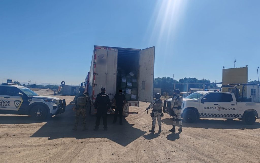 San Diego de la Unión, Gto., a 24 de noviembre de 2025.- La Secretaría de Seguridad y Paz, a través de las Fuerzas de Seguridad Pública del Estado (FSPE) aseguraron un tractocamión con 20 toneladas de mercancía de manufactura extranjera valuada en aproximadamente 2 millones 800 mil  pesos y que no pudo ser acreditado su ingreso al país.