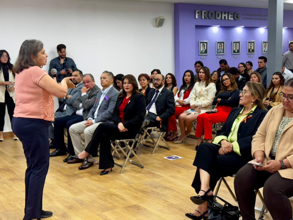 Asimismo, resaltó la alianza interinstitucional impulsada este año entre la PRODHEG, el Instituto Estatal de Capacitación (IECA) y el Instituto Nacional de Ciencias Penales (INACIPE), que permitió capacitar y sensibilizar a 721 personas servidoras públicas estatales y municipales para fortalecer la atención presencial y la orientación telefónica a mujeres víctimas de violencia.