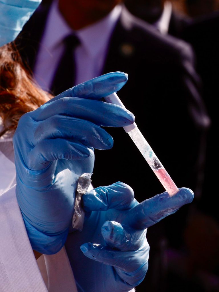 Libia Dennise estuvo acompañada por el Fiscal General de Guanajuato, Gerardo Vázquez Alatriste, y juntos presenciaron la incineración de estos objetos.