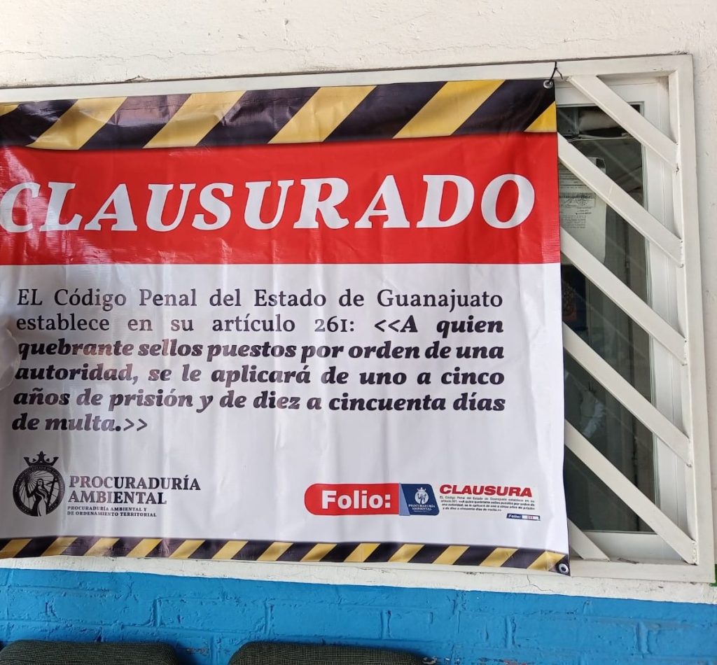 Guanajuato, Gto, a 25 de noviembre de 2025.- La Procuraduría Ambiental y de Ordenamiento Territorial del Estado de Guanajuato mediante una denuncia, realizó la clausura temporal de un centro de verificación vehicular en el municipio de Irapuato, Guanajuato.