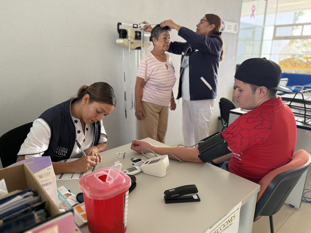 200 dosis aplicadas de vacunas contra influenza, COVID-19 y neumococo, dirigidas a grupos de riesgo, se aplicaron 118 detecciones de factores de riesgo, entre ellas diabetes e hipertensión.