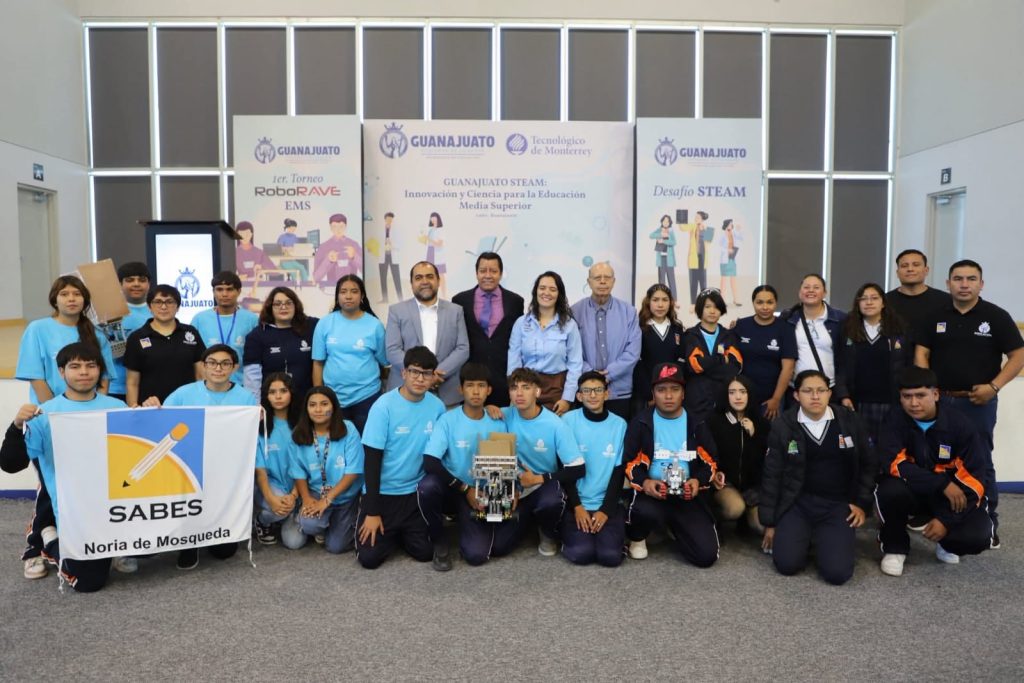 León, Gto., 28 de noviembre de 2025. –Estudiantes de Educación Media Superior participaron en el 1er Torneo RoboRAVE EMS 2025 y en el evento Guanajuato STEAM, una jornada organizada por el Gobierno de la Gente, a través de la Secretaría de Educación de Guanajuato (SEG), donde se premiaron los mejores proyectos de robótica, ciencia e innovación, consolidando al estado como un referente nacional en educación tecnológica.