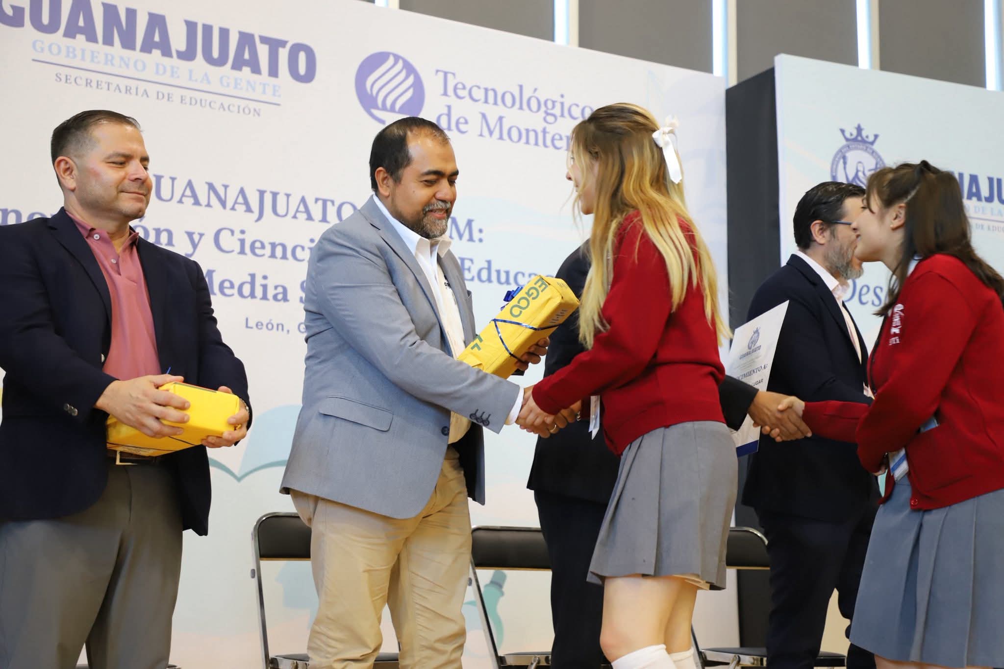 Los proyectos galardonados fueron Innova Hands del Bachillerato Militarizado “Batallón Primer Ligero” de Celaya, Flash Dunk del Bachillerato Bivalente de Talentos de Irapuato y Semillitas Financieras del DGETI Plantel Irapuato, quienes recibieron premios como tabletas HUAWEI, cámaras Instax Mini y kits de robótica Arduino.