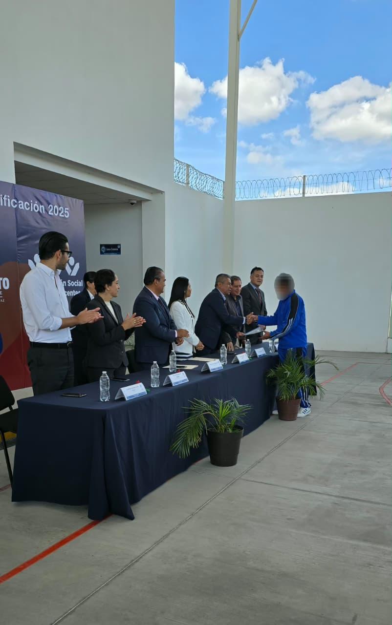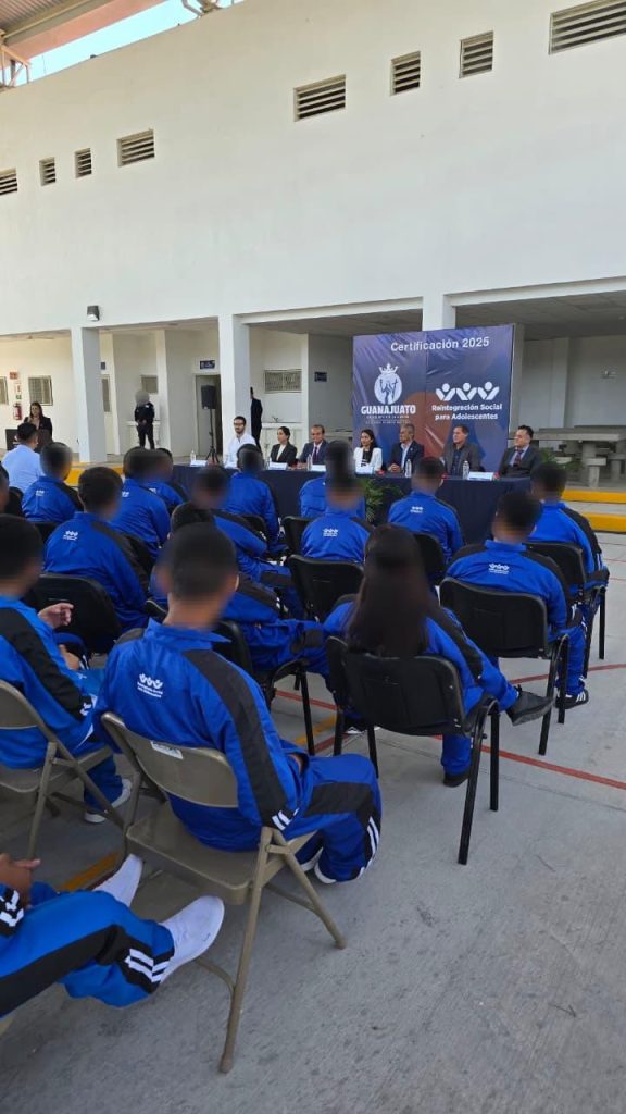 León, Gto., a 29 de noviembre de 2025.- La Secretaría de Seguridad y Paz a través de la Dirección General de Reintegración Social para Adolescentes (DGRSA), realizó la entrega de 43 certificados educativos y laborales a jóvenes del Centro de Internamiento Especializado para Adolescentes en León.