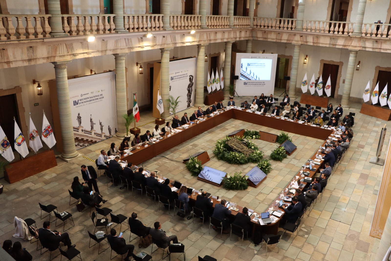 Las sesiones se realizaron en recintos históricos como la Alhóndiga de Granaditas, el Teatro Juárez y el Museo Palacio de los Poderes, donde se llevaron a cabo la CCCLXVI Reunión de la Comisión Permanente de Funcionarios Fiscales, la LXX Junta de Coordinación Fiscal y la Primera Reunión de los Comités y Grupos de Trabajo del Sistema Nacional de Coordinación Fiscal 2025–2026, concluyendo con la plenaria de la LIV Reunión Nacional.