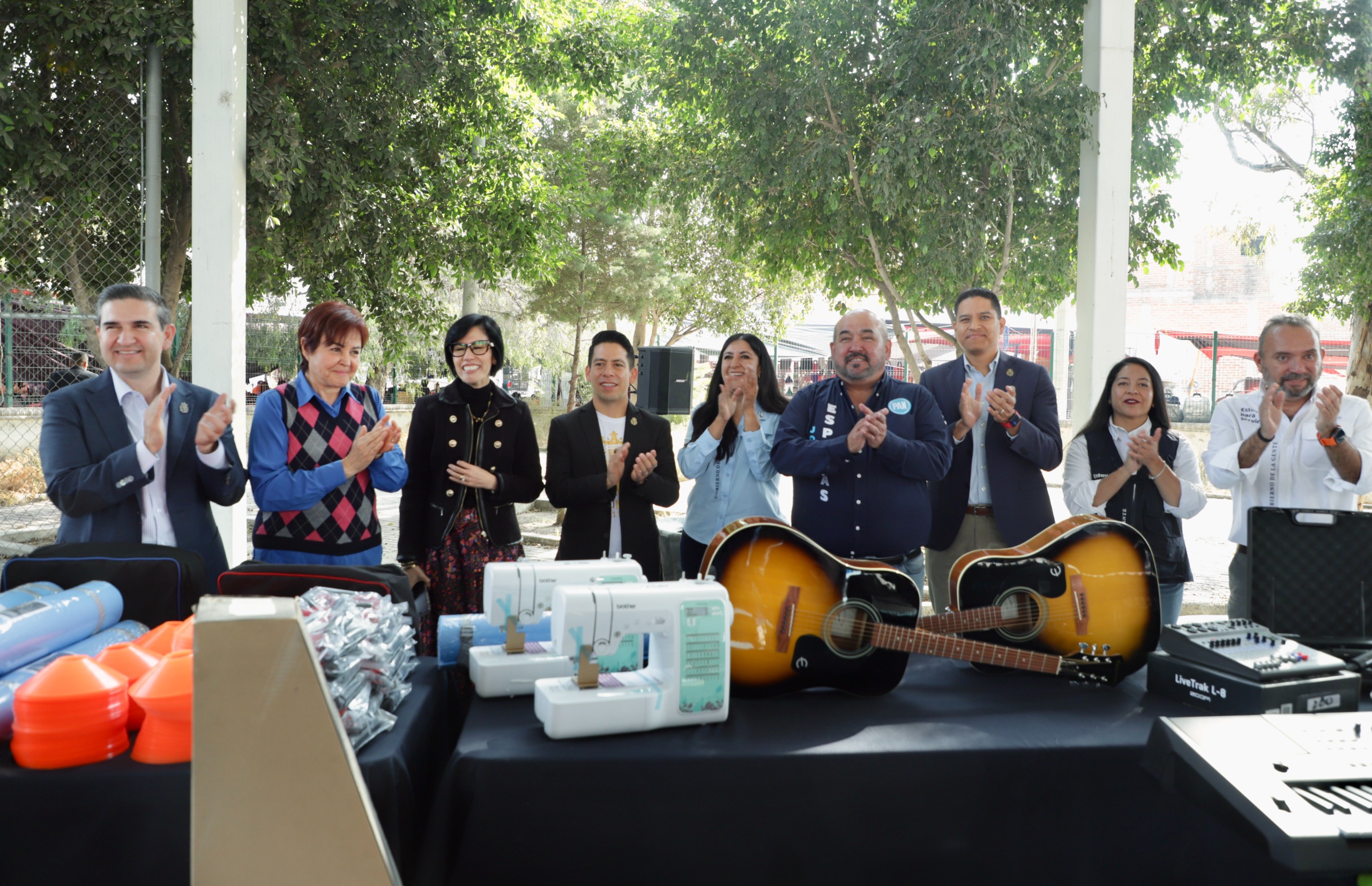 En esta primera etapa se entregaron 910 bienes con una inversión de 388 mil 809 pesos, que incluyen: material de cocina, equipo de belleza, equipo de audio, material deportivo y musical, implementos de corte y confección, además de herramientas para mantenimiento.