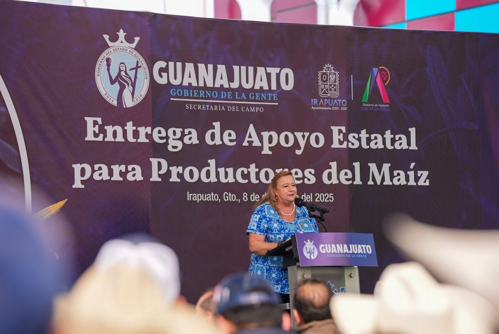 Irapuato, Gto. 08 de diciembre de 2025.– La Gobernadora de la Gente, Libia Dennise García Muñoz Ledo, encabezó la entrega estatal de apoyos a las y los productores de maíz de esta entidad.