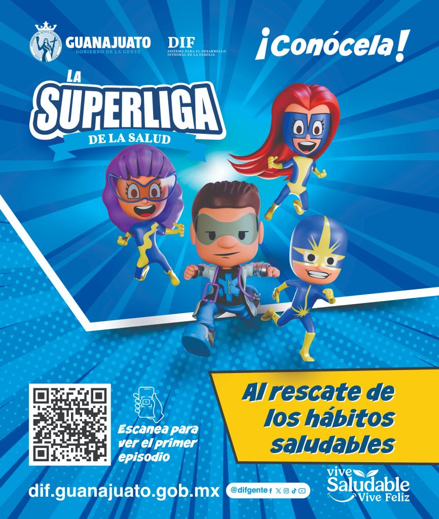 Guanajuato, Gto; a 9 de diciembre del 2025.- El Sistema DIF Estatal lanzó la nueva campaña animada de la Superliga de la Salud, un proyecto diseñado para acercar a niñas, niños y adolescentes a temas como alimentación saludable, actividad física y emocional en donde todo a través de superhéroes que luchan contra villanos que representan riesgos cotidianos.