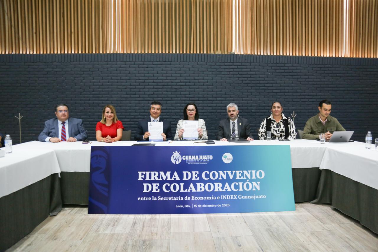 León, Gto., 17 de diciembre de 2025.- La Secretaría de Economía firmó un convenio con el Consejo Nacional de la Industria Maquiladora y Manufacturera de Exportación (INDEX) para promover la certificación del programa de Industria Manufacturera, Maquiladora y de Servicios de Exportación (IMMEX) entre empresas manufactureras instaladas o en proceso de instalación en el estado.