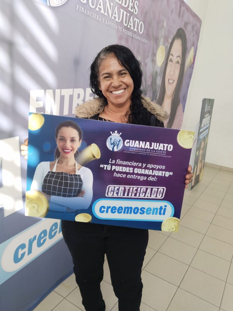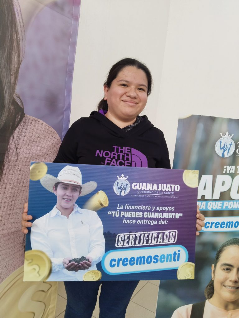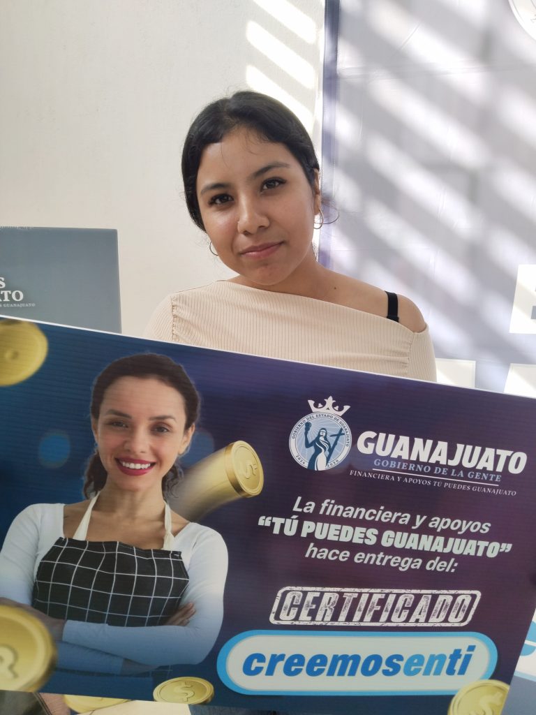 En un evento realizado en Abasolo, mujeres y jóvenes participantes en este programa de la Financiera y Apoyos Tú Puedes Guanajuato, 179 personas recibieron este recurso luego de haber tomado el taller inicial del emprendedor como requisito primordial para poder acceder a “Creemos en ti”.