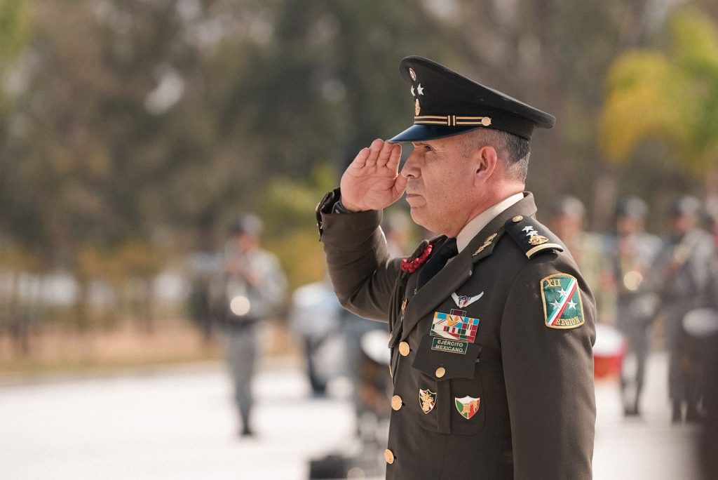 Posteriormente la Gobernadora de la Gente, Libia Dennise García Muñoz Ledo, asistió a la ceremonia de Toma de Protesta al Cargo, Posesión del Mando y Protesta de Bandera por parte del General de División Diplomado de Estado Mayor (DEM), Jorge Pedro Nieto Sánchez, Comandante Interino de la XII Región Militar, con sede en Irapuato.