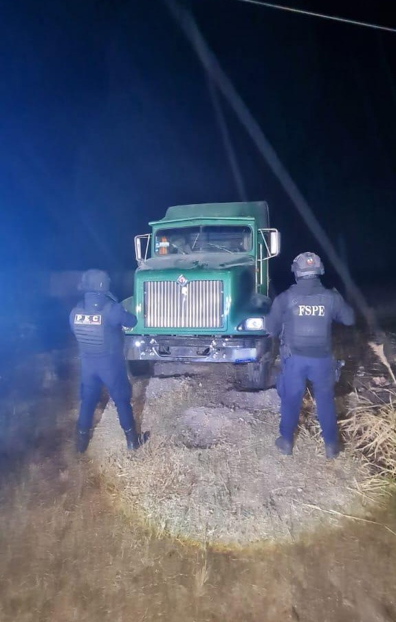 En el lugar fueron asegurados contenedores de plástico tipo cisterna, con capacidad aproximada de 20 mil litros cada uno, que se encontraban llenos de hidrocarburo. Así como dos mangueras de plástico y un contenedor metálico vacío con capacidad aproximada de 100 mil litros. También fue asegurado un tractocamión marca International, color verde con blanco, que contaba con reporte de robo vigente.
