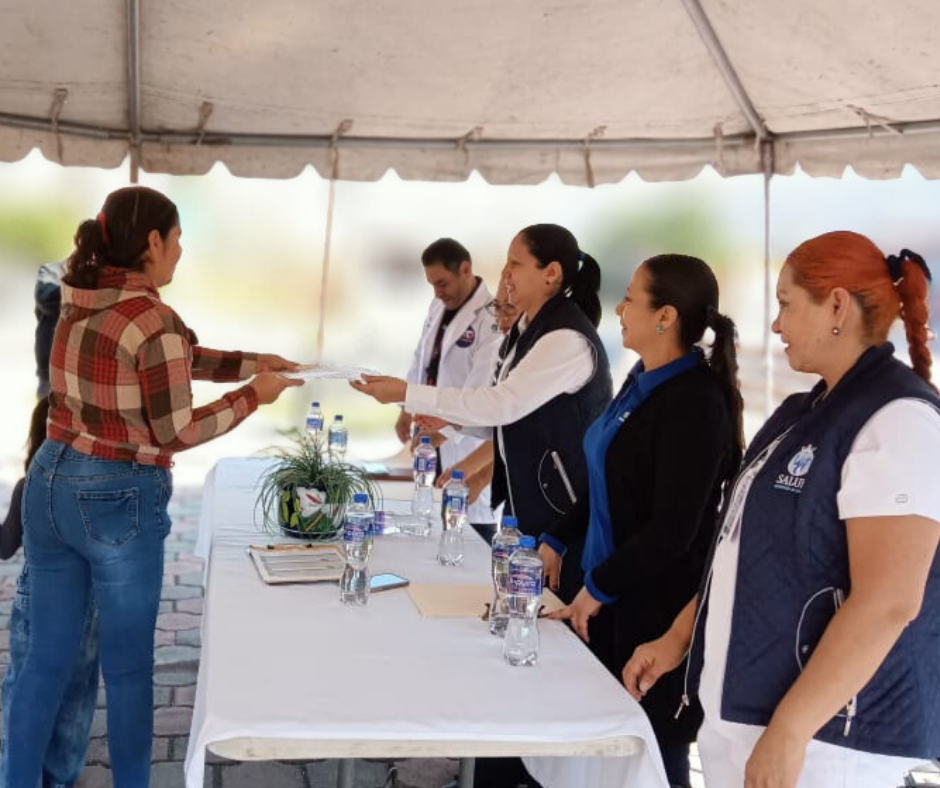 Durante la entrega de la certificación estuvieron presentes la Dra. Saira Villagómez, jefa de la Jurisdicción Sanitaria V Salamanca; Alejandro Cortés Pérez, director del CAISES Uriangato y Verónica Ruiz González, delegada de la comunidad y presidenta del Comité Local de Salud.