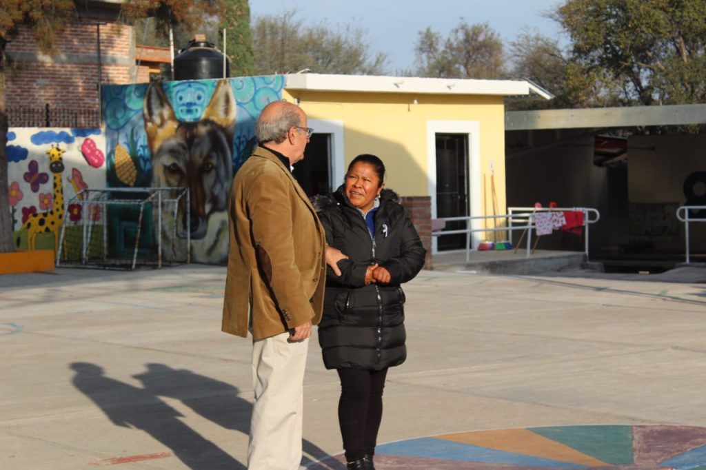 En la Primaria Miguel Hidalgo, ubicada en la comunidad La Cruz del Palmar, se constató el trabajo pedagógico que impulsa a través del programa Conecta2, una plataforma educativa que promueve la Fundación 11:59:59 que busca contribuir al fortalecimiento de la comprensión lectora, el pensamiento crítico y la participación del alumnado. Destacó también la vinculación de los contenidos del programa con la enseñanza de la lengua otomí, como una acción que reconoce y preserva la identidad cultural de la región norte.