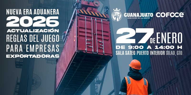 Silao, Gto. A 15 de enero de 2026. Ante un entorno global cada vez más exigente, y en medio de cambios regulatorios constantes, mayor fiscalización y procesos aduaneros más digitalizados, la Coordinadora de Fomento al Comercio Exterior del Estado de Guanajuato (COFOCE) invita a las empresas del estado a participar en el curso “Nueva Era Aduanera 2026: Actualización de las reglas del juego para empresas exportadoras”, un espacio de actualización estratégica diseñado para fortalecer su competitividad en el comercio internacional.
