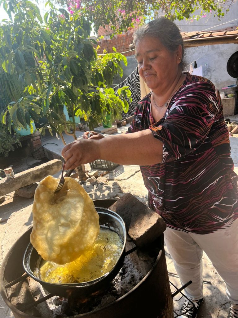 Ella se dedica a la elaboración y venta de tamales, gorditas, buñuelos, atole, tortillas y sopes.