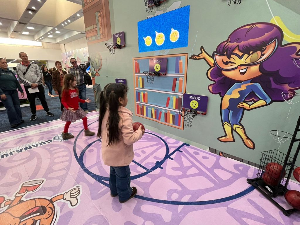 En este espacio se desarrolla una dinámica interactiva mediante un juego de básquet, en el que las y los asistentes emparejan pelotas con emoticones proyectados en una pantalla LED; una vez identificada la pareja correcta, encestan para sumar puntos y al finalizar reciben un souvenir.