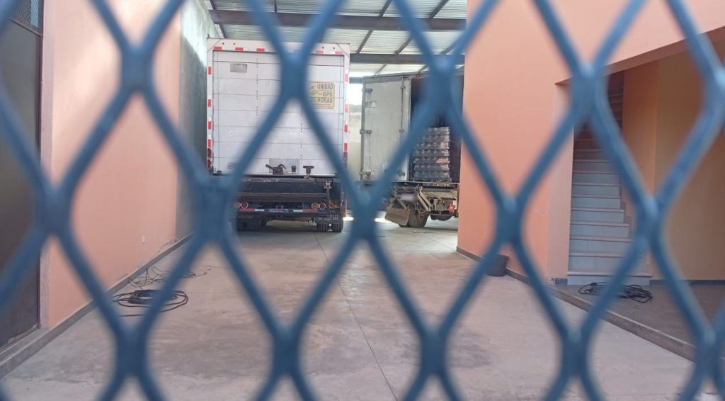 En el lugar se aseguraron un camión tipo torton, cargado con una tarima con 336 latas de chiles en vinagre, con un valor aproximado de 33 mil 600 pesos, relacionado con actividades de transporte de mercancía, así como un camión tipo torton que contaba con reporte de robo vigente, que se encontraba sin carga al momento de la diligencia.