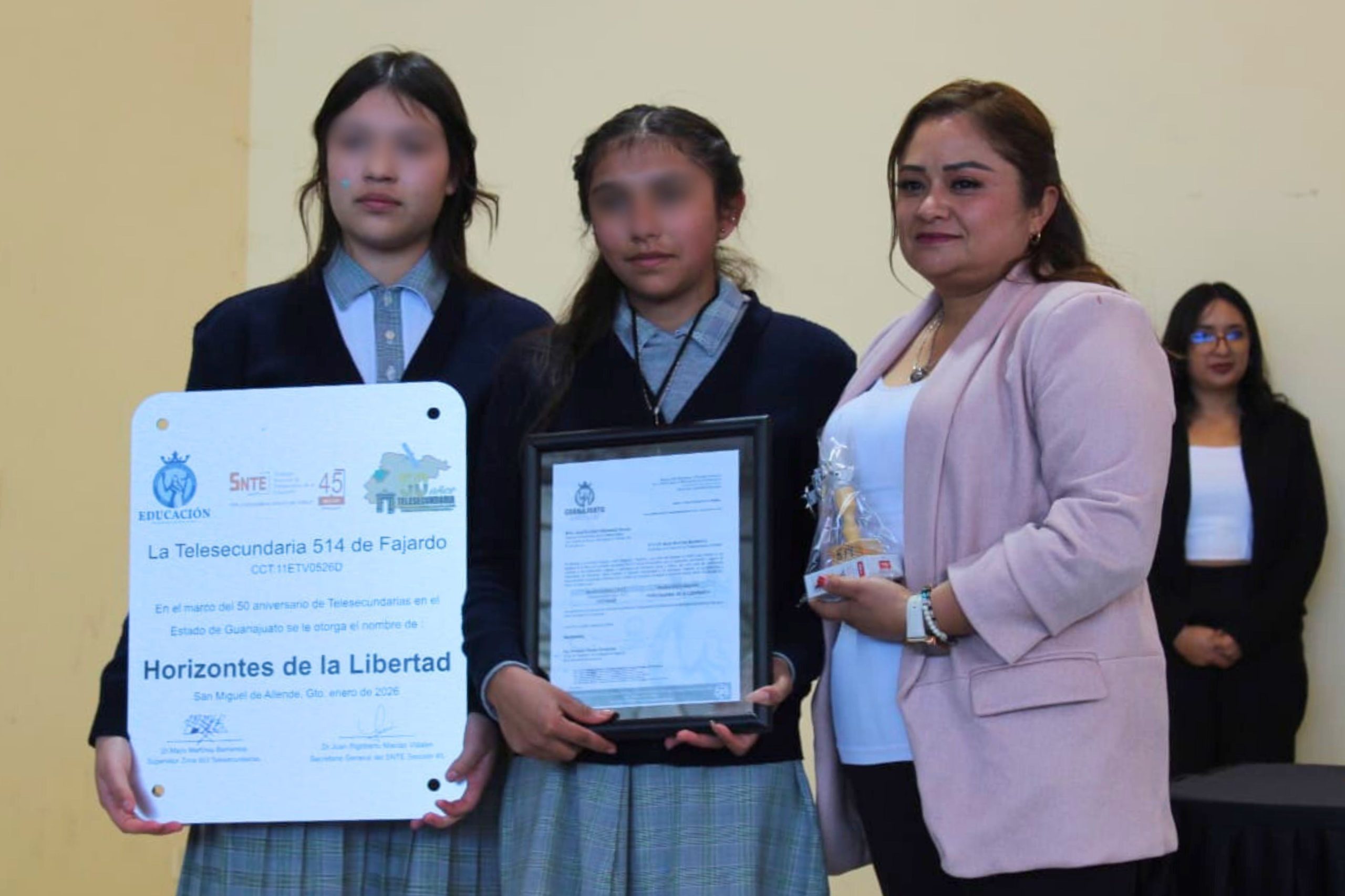San Miguel de Allende, Gto., 27 de enero de 2026.- Un total de 23 telesecundarias ubicadas en comunidades rurales de San Miguel de Allende recibieron su nombre oficial, un hecho que fortalece la identidad escolar, el sentido de pertenencia y el vínculo entre la escuela, la familia y la comunidad, como parte de las acciones que impulsa la Secretaría de Educación de Guanajuato (SEG) para consolidar trayectorias educativas con mayor significado.