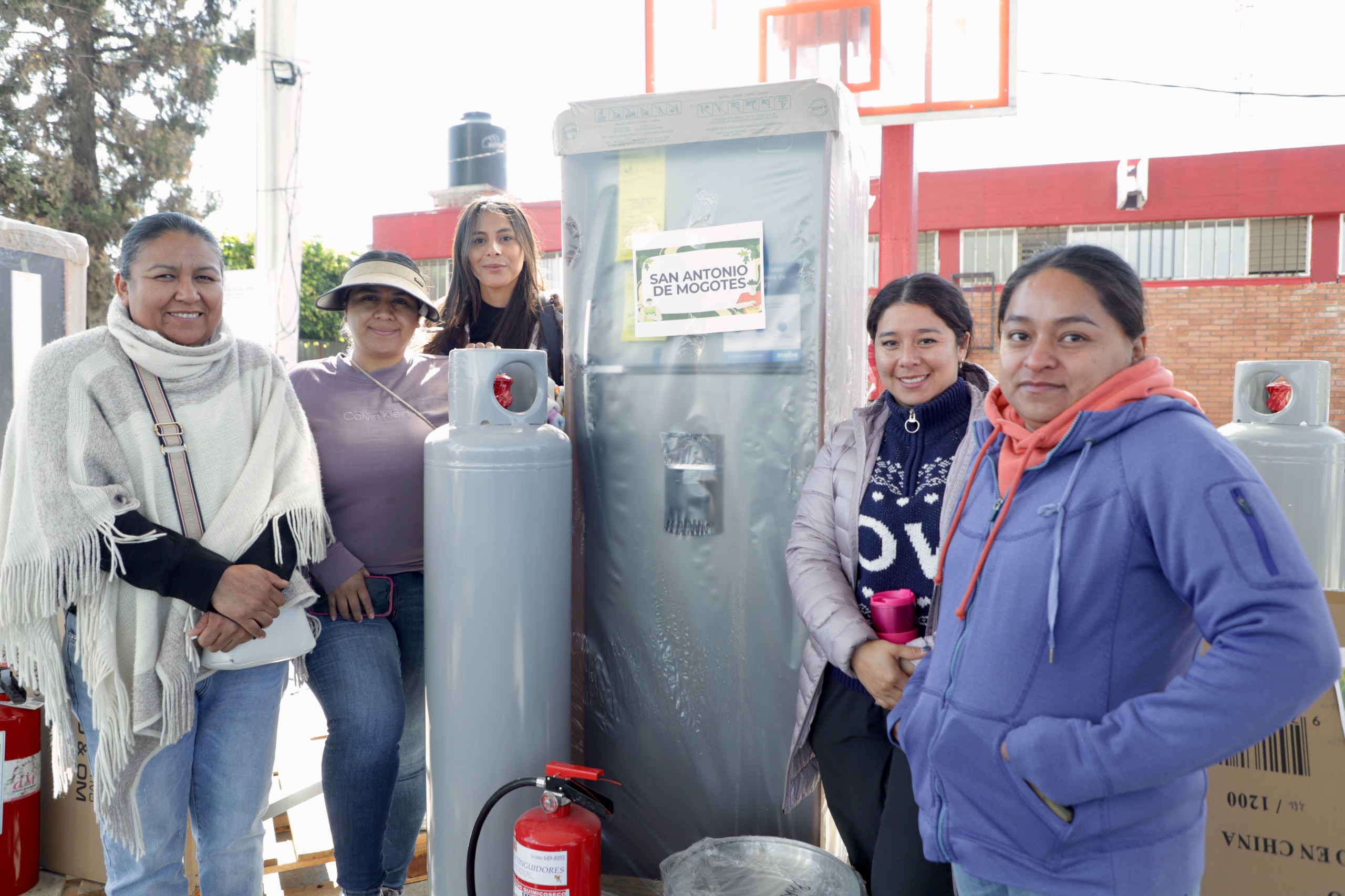 Entre los insumos y equipamiento entregados se encuentran: mantenimiento y recarga de extintores, extintores nuevos, refrigeradores, parrillas, cilindros de gas, ollas vaporeras, mesas plegables, licuadoras, así como alimentos frescos como jitomate, cebolla, chile morrón y chayote, acciones que permiten ofrecer espacios más seguros, funcionales y con alimentos de mayor calidad.