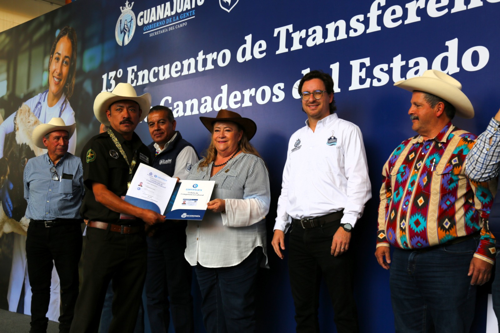 León, Gto., 30 de enero del 2026.- En el marco del 13º Encuentro de Transferencia de Tecnología para Ganaderos del Estado de Guanajuato, se llevó a cabo la entrega de 64 Certificados de Competencia Laboral a personal verificador estatal de ganadería.