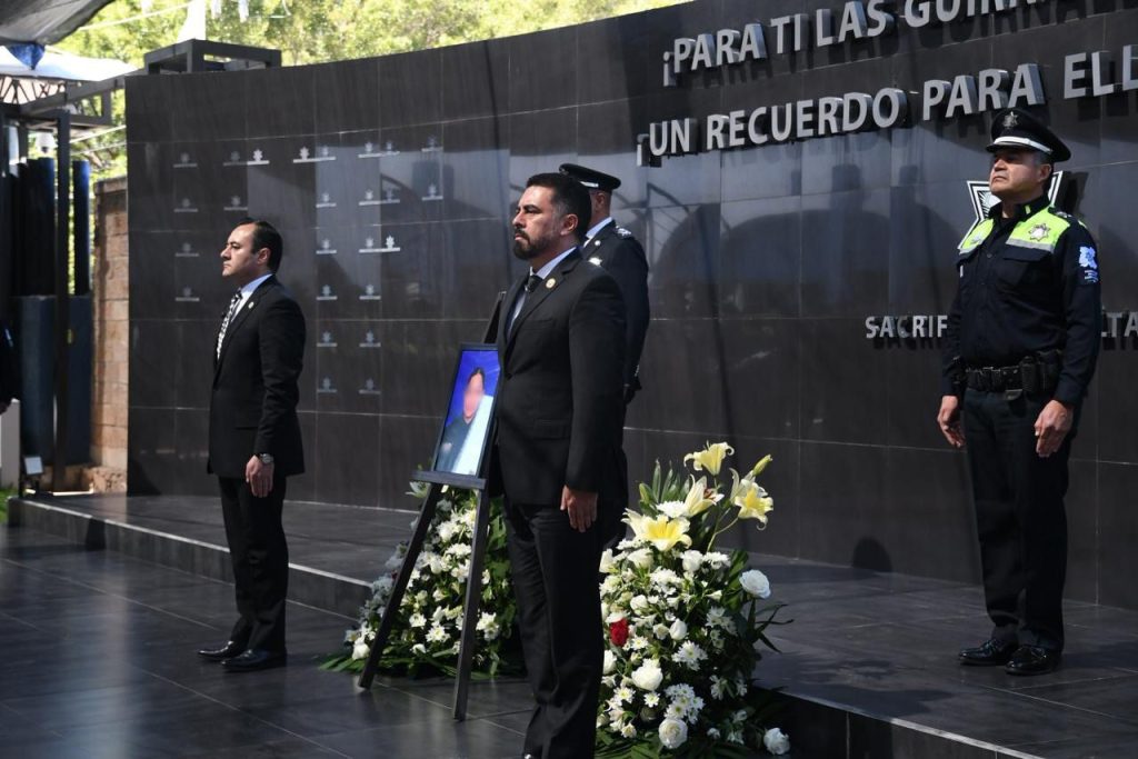Entre adornos florales y una fotografía de Elena portando su uniforme, se le rindió un homenaje y una guardia de honor presidida por el secretario; el Subsecretario de Seguridad, Hugo César Romero; Víctor Manuel Osornio Álvarez, comisario en jefe de la Policía Estatal de Caminos y José Juan López, Comisario de las FSPE.