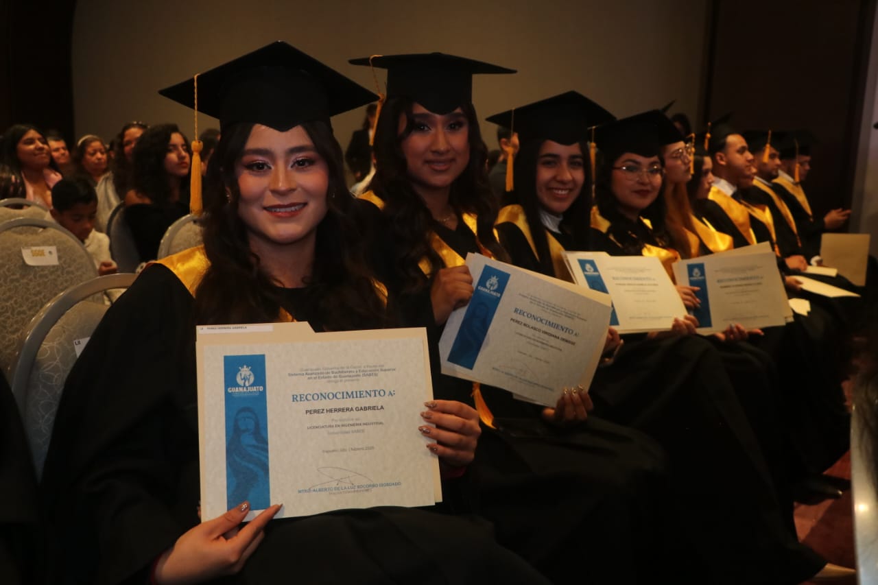 Durante la ceremonia, 120 egresadas y egresados de la Universidad SABES Campus Irapuato fueron reconocidos por culminar sus estudios en la Licenciatura en Ingeniería Industrial.