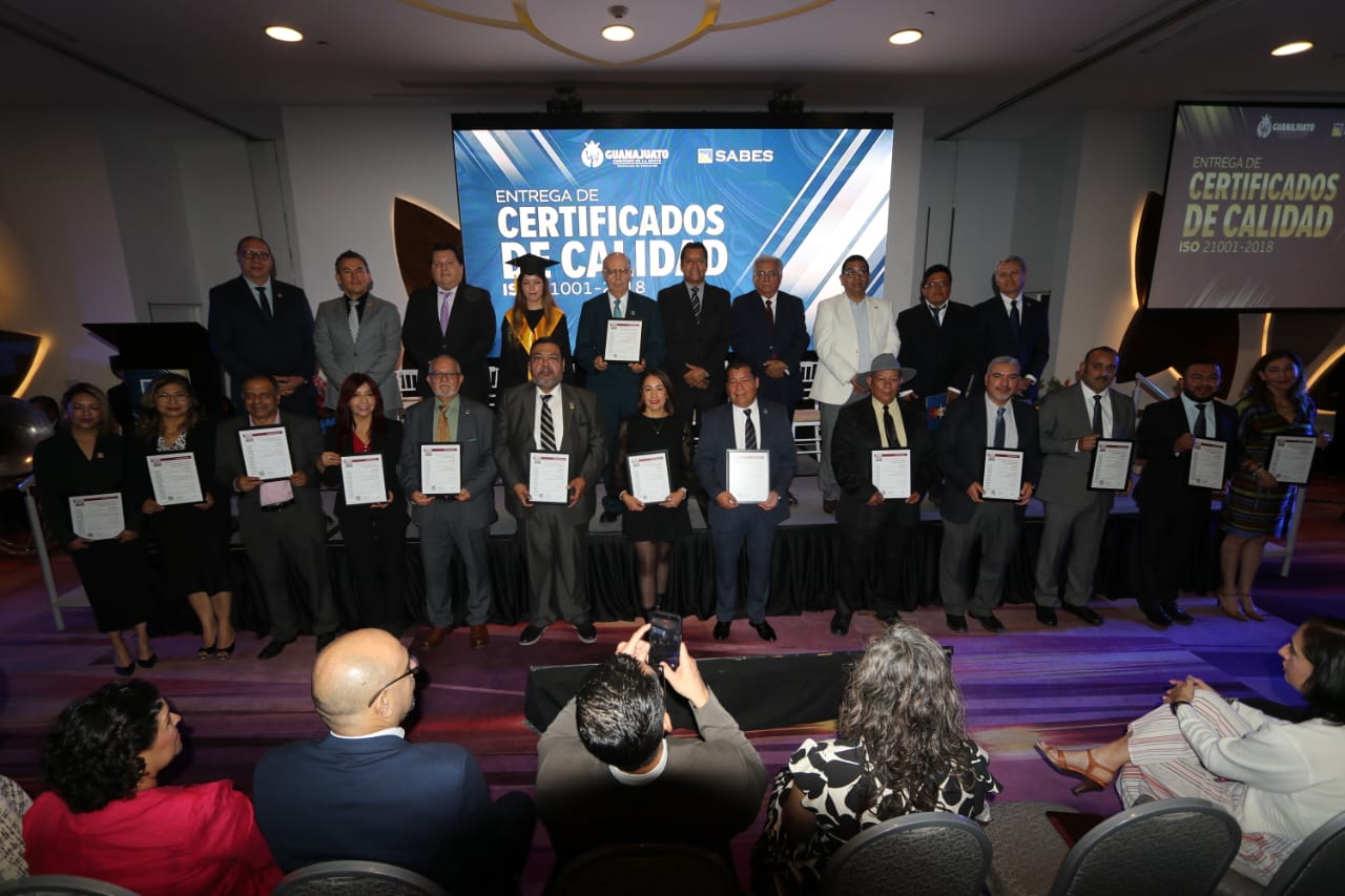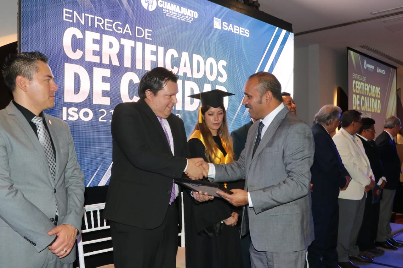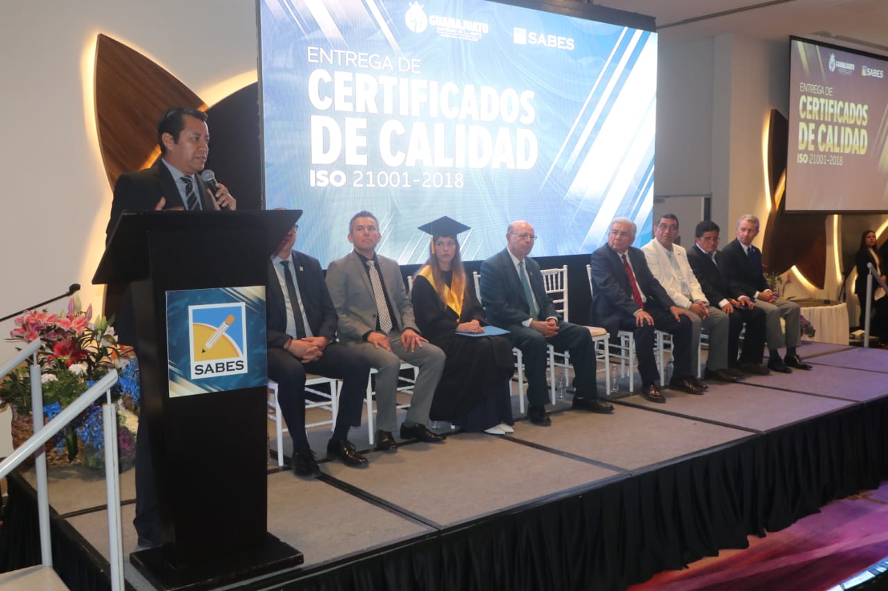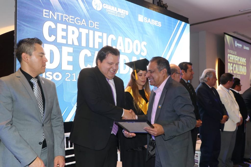 Este distintivo que se entregó al Mtro. Alberto Diosdado, Director General del SABES, así como a las y los 13 coordinadores de los campus universitarios, reconoce a la institución como la primera, a nivel estatal, en certificarse a través de su Sistema de Gestión para Organizaciones Educativas (SGOE). Refrendando con ello el compromiso institucional con la calidad, la inclusión y la equidad, mediante la mejora continua de procesos eficientes y eficaces.