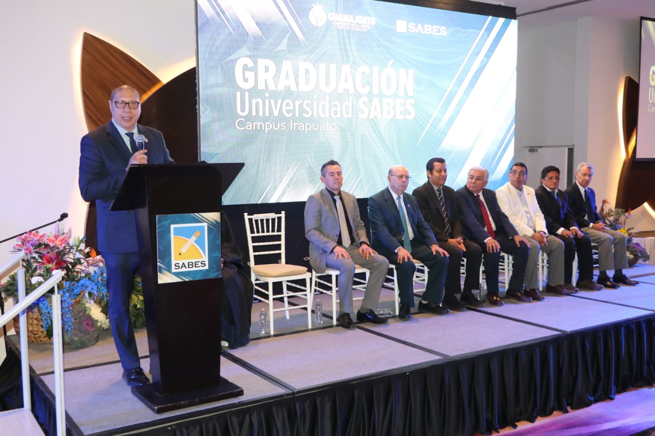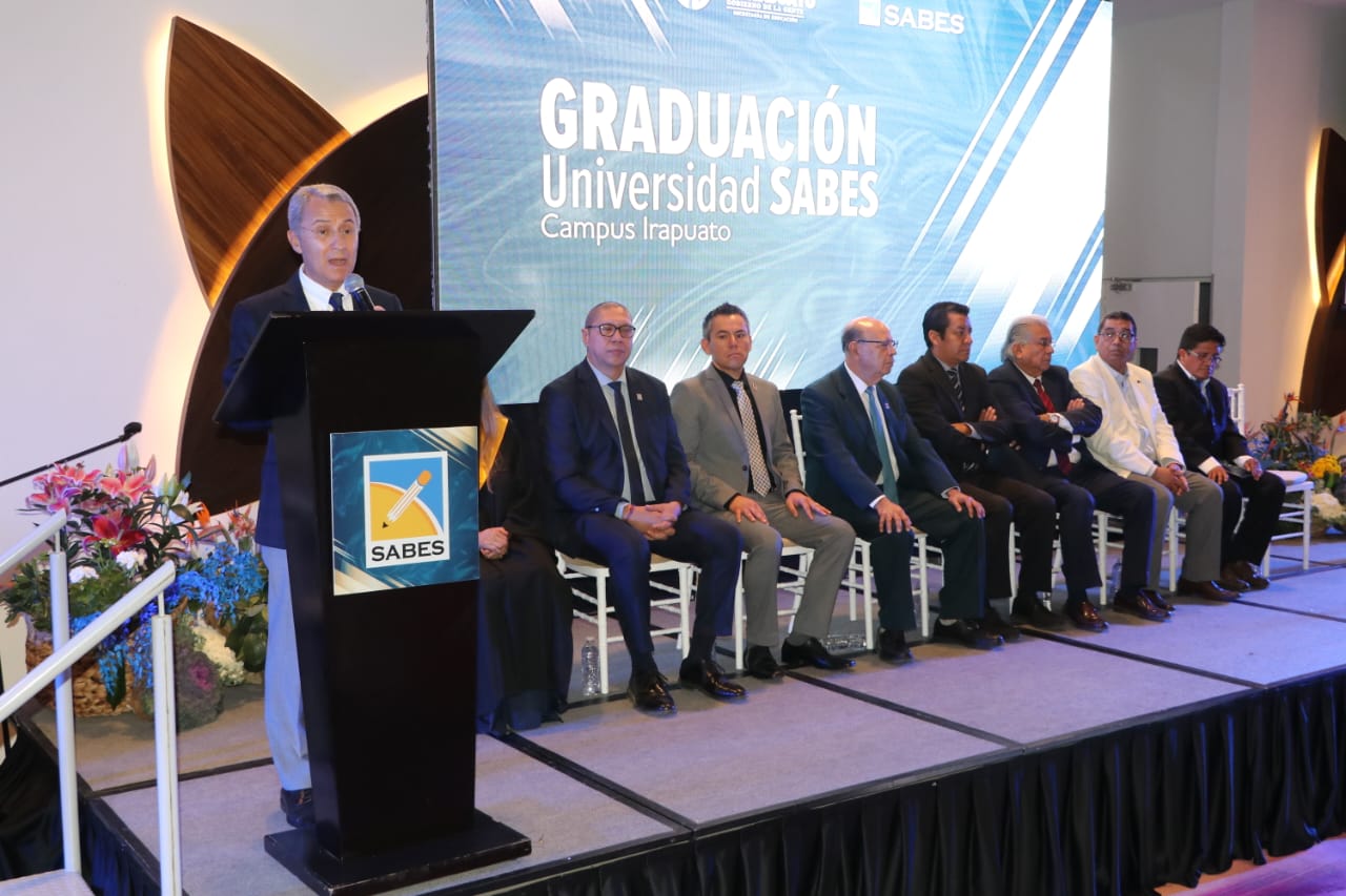 El Lic. José de la Luz Martínez Romero, Director General de Educación Media Superior y el Mtro. Alberto Diosdado, Director General del SABES, estuvieron acompañados en presidum por el Mtro. José Cruz Gallegos Méndez, Consultor Independiente y miembro del H. Consejo Directivo del SABES, el Lic. Óscar Hugo Luna Rizo, Director de Desarrollo Humano y Organizacional del SABES; el Arq. Víctor Cid Estrada, Presidente de CANACINTRA Delegación Irapuato; el Dr. Rubén Antonio García Mendoza, Director de la Universidad SABES; el Ing. José Llanito Urbano, Docente de la Universidad SABES Campus Irapuato; Miriam Guadalupe Martínez Domínguez, egresada de la Licenciatura en Ingeniería Industrial y el Ing. José Mauro Rodríguez Rivera, Director General de MRR Consultores y Asociados y miembro del H. Consejo Directivo del SABES.