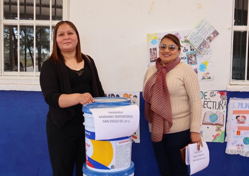 La aportación de la empresa incluyó 12 WC infantiles, 160 WC para adultos, 35 mingitorios y 58 lavamanos; además de 135 cubetas de pintura blanca de 20 litros, estas últimas donadas por la Secretaría de Educación de Guanajuato. Estos insumos fortalecerán espacios fundamentales para la vida escolar diaria, al garantizar sanitarios funcionales y áreas renovadas que contribuyen a la salud, el bienestar y la permanencia de niñas, niños y adolescentes en las aulas.