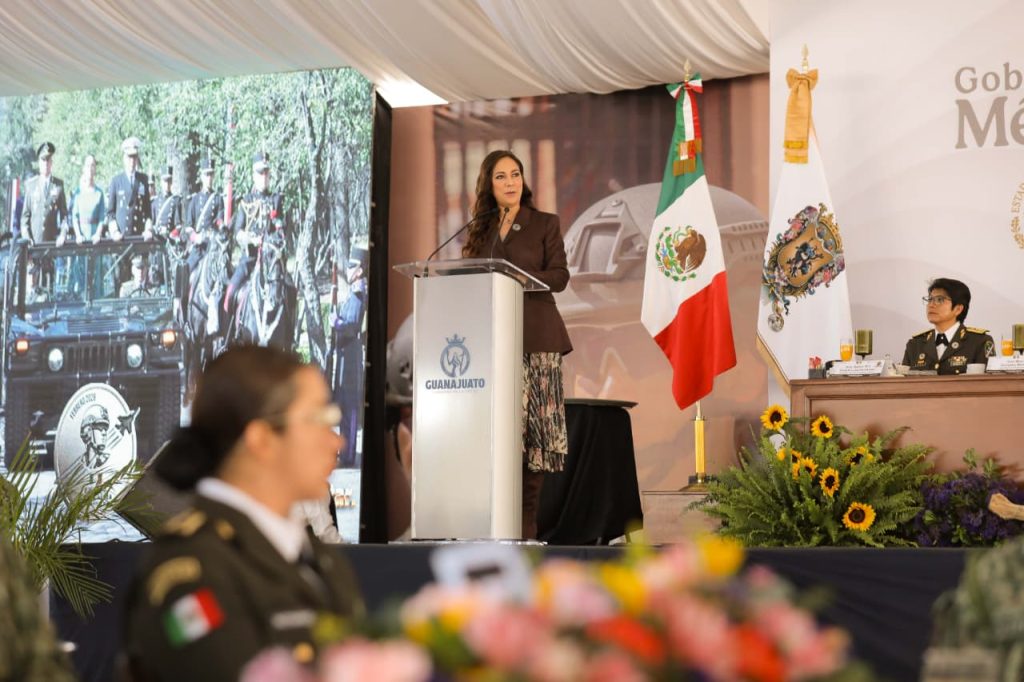 Por la mañana la Gobernadora, Libia Dennise García Muñoz Ledo, asistió a la Conmemoración del 113 Aniversario del Ejército Mexicano, en la XII Región Militar de Irapuato, donde reconoció la disciplina y lealtad con la que estas mujeres y hombres sirven a México y a Guanajuato.