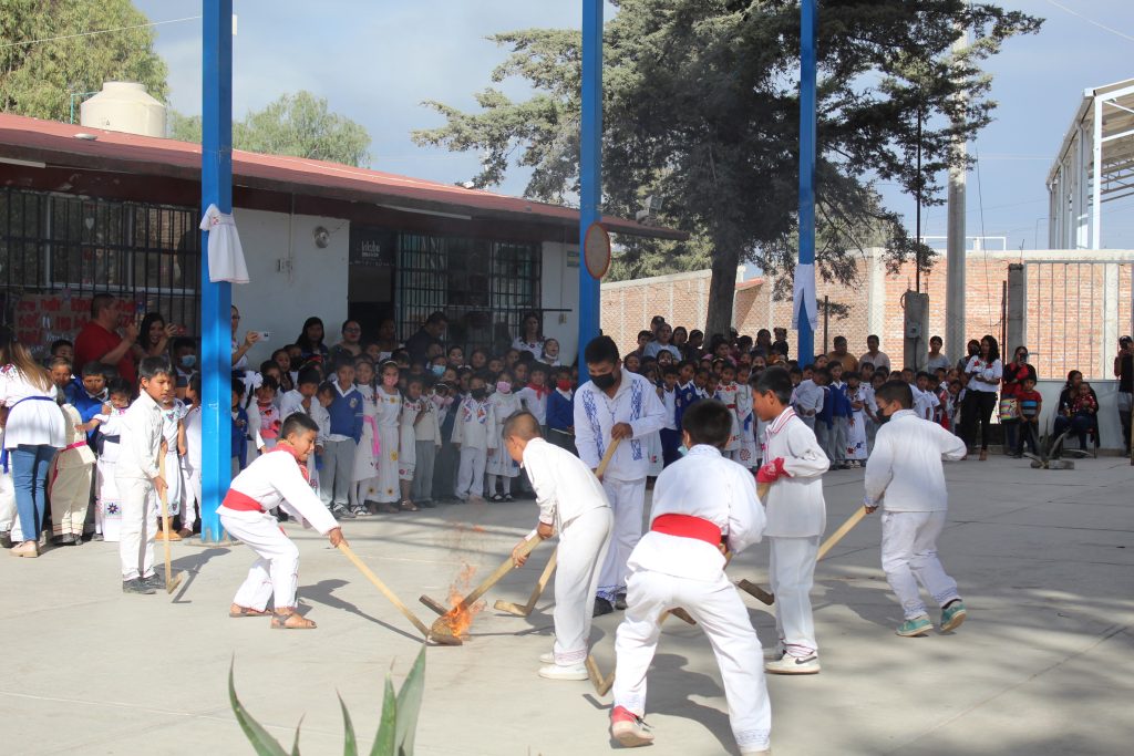 Por su parte, en la escuela Miguel Hidalgo, de la comunidad indígena otomí de Cieneguilla, en Tierra Blanca, el director Celestino García Cruz destaca: “Los pueblos originarios tenemos una gran riqueza cultural: lengua, costumbres, comida y vestuario. Hoy, a través del sistema educativo, le decimos al mundo que estamos vivos y que trabajamos para rescatar nuestra lengua materna con cantos, poesía y cuentos, guiados por nuestras maestras de lengua indígena”.