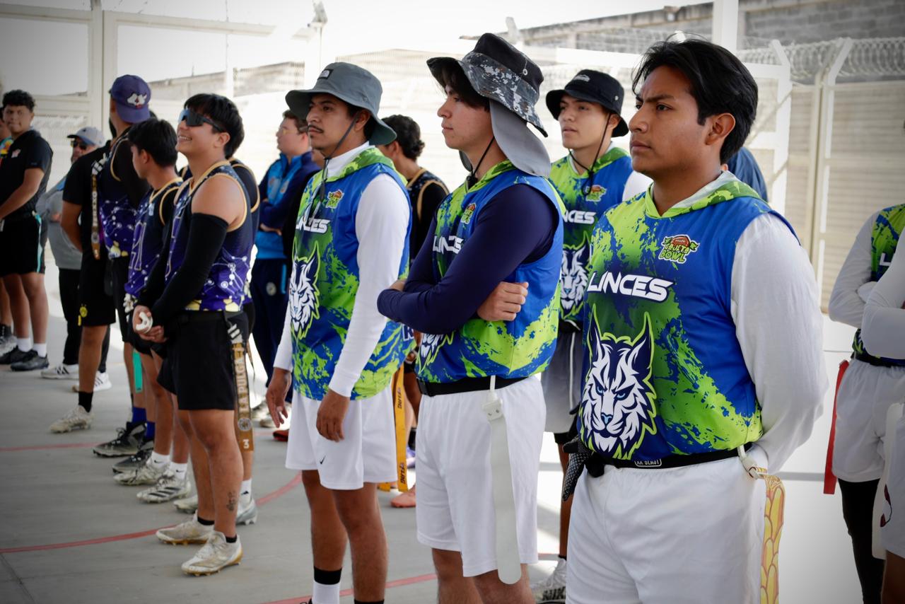 León, Gto., a 25 de febrero de 2026.- El campo del Centro de Internamiento Especializado para Adolescentes recibió a tres equipos de tochito bandera para enfrentarse con los Diamantes Negros D.G.R.S.A. en el torneo relámpago “Segundo down, rendirse jamás”.